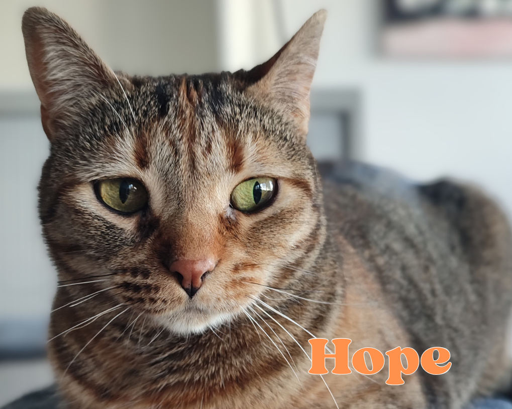 En agosto de 2024, la vida de Hope dio un giro maravilloso. Se trasladó a una casa de acogida indefinida junto a Niebla, un hogar que ya conocía las necesidades de los gatos positivos y donde ha podido terminar de florecer. Allí vive tranquila y feliz, pero en el fondo de nuestro corazón sabemos que Hope todavía está esperando su regalo definitivo: un hogar para siempre donde sea la protagonista absoluta.